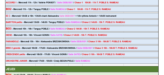 LES JOURS ET HORAIRES FM BO BD ET OJ