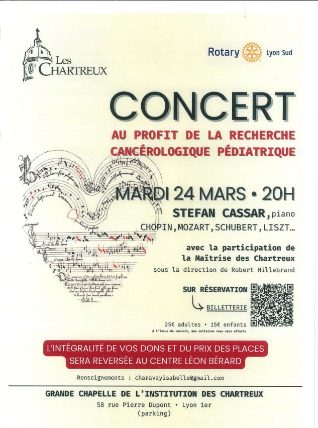 Notre illustre professeur de piano Stefan Cassar sera de la partie et il sera accompagné par la Maîtrise des Chartreux. Il y a un QR code sur l'affiche pour la billetterie