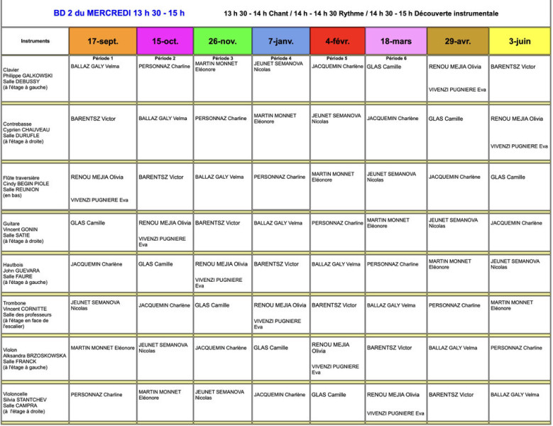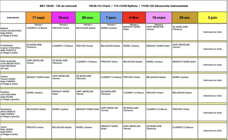 Atelier de formation musicale rythme/chant d'une heure, commun aux groupes BD1, BD2 et BD3